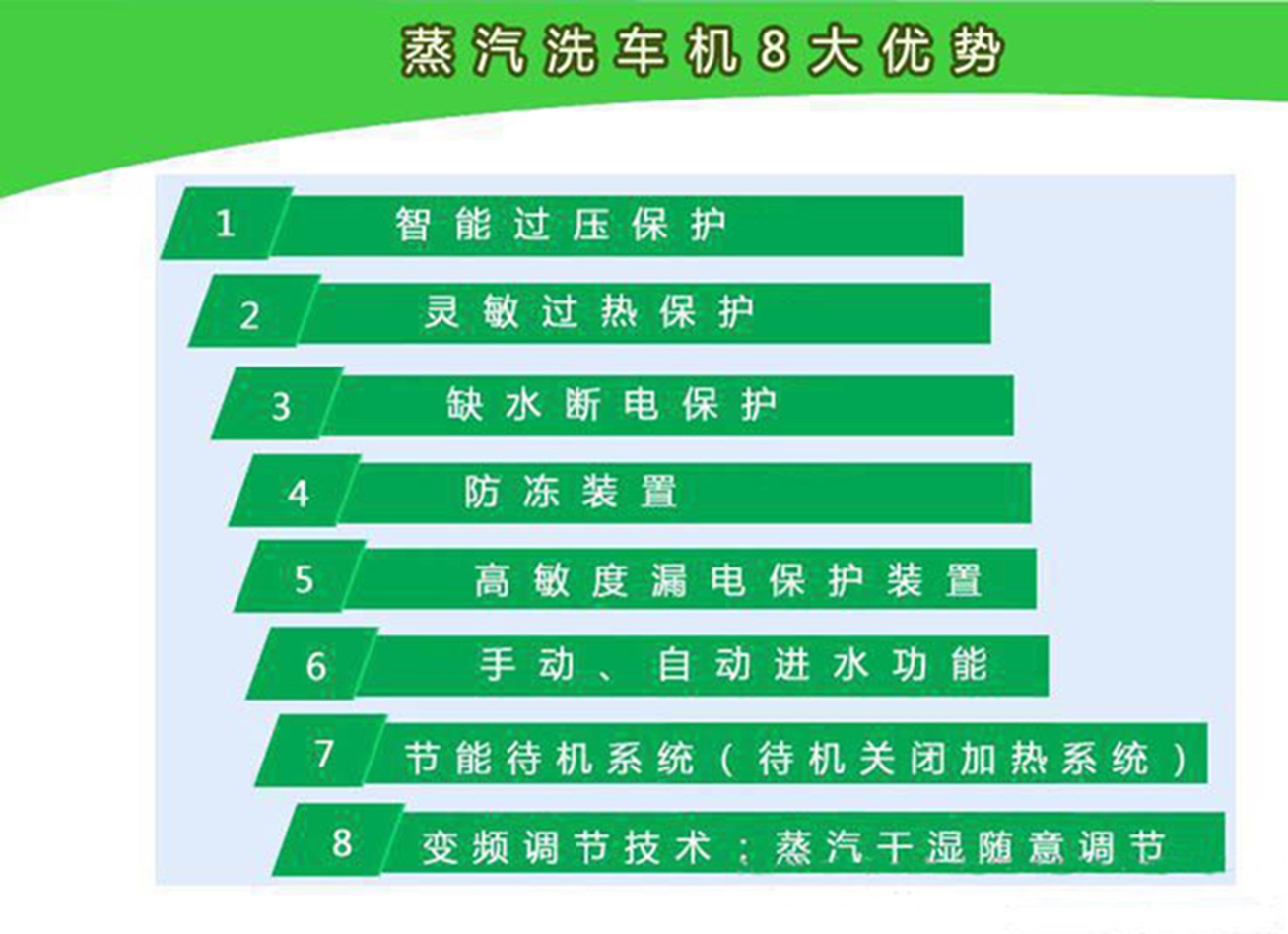 2、蒸汽洗車機(jī)工作效率:電腦洗車機(jī)的工作效率直接影響經(jīng)營收入,因此,在進(jìn)行洗車機(jī)設(shè)備選購時(shí)要重點(diǎn)考慮。專家批出,蒸汽洗車機(jī)設(shè)備自控程度的高低是反映洗車機(jī)設(shè)備自身技術(shù)水平的基本指標(biāo),據(jù)介紹,采用超溫保護(hù)、超壓保護(hù)、燃?xì)庑孤┍Wo(hù),可使蒸汽洗車機(jī)設(shè)備通過各種信號(hào)傳輸,達(dá)到高度的自動(dòng)化預(yù)警設(shè)備。