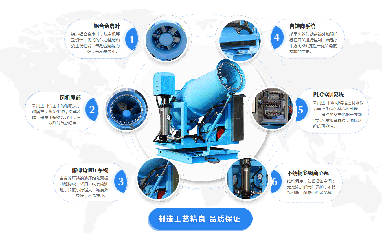 中久環保霧槍機具有運動靈活,結構緊湊,布局合理,做工精細,配置完善,操作性能好等特點。